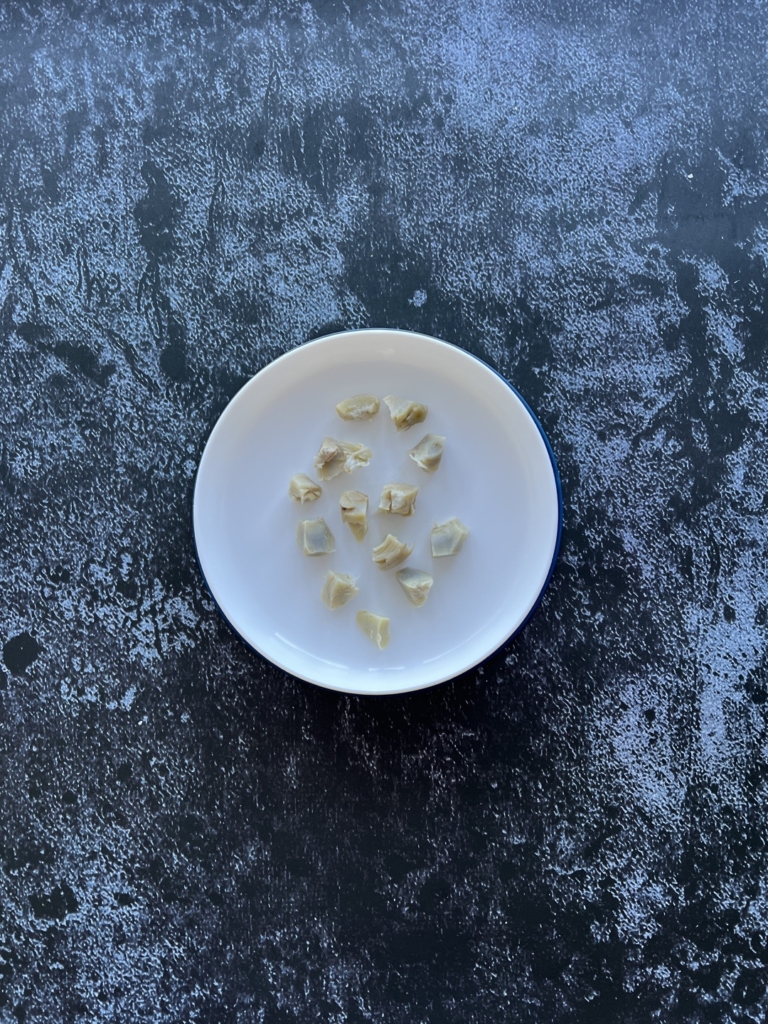 Living here in the US, I miss artichokes so much!. I know we can find them in the supermarket, but they are pricy and lack flavor. Nothing like eating one from Chile! I wanted Theo to try them, but I wasn’t willing to pay 4 USD for a tasteless artichoke, so I bought it frozen, and it was a success! We try to keep plastics out of our kitchen, but sometimes we just can’t.