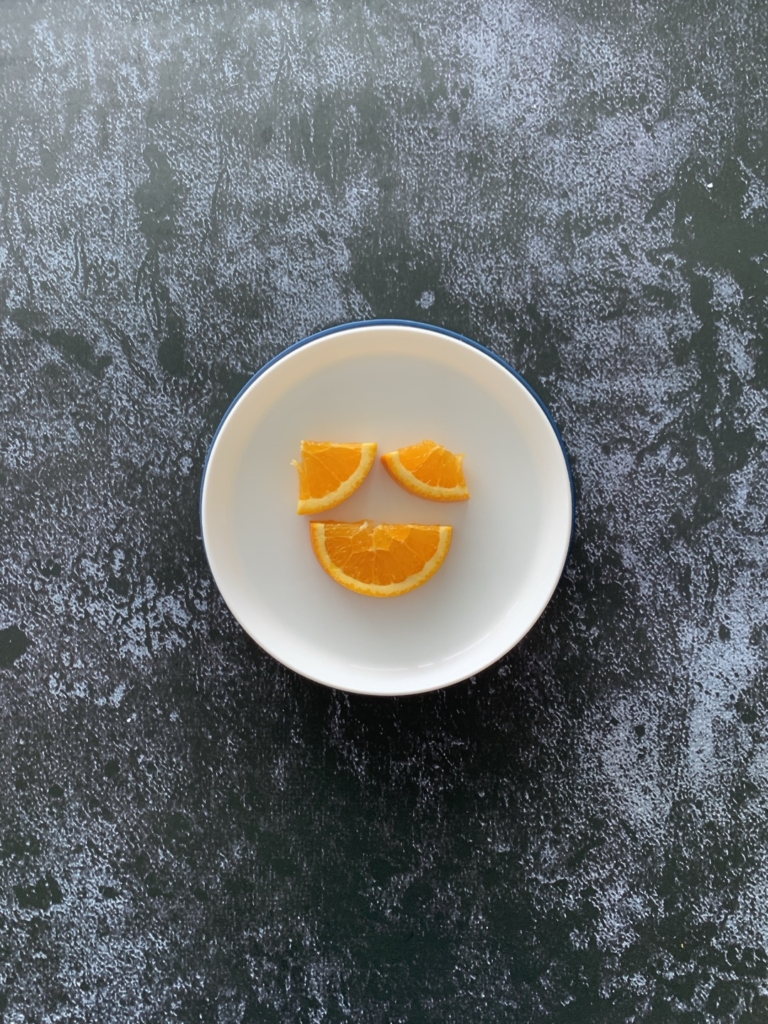 To offer orange wedges to our six-month-old baby, we have to remember to take off seeds and fiber (white part). Once you see your child develops pincer-grasp, you can peel off and cut every wedge into pieces. See the video for more details.