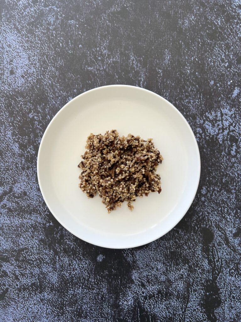Esta receta es realmente fácil y sólo necesitas dos ingredientes: Quínoa cocida y champiñones salteados (cantidades a gusto).