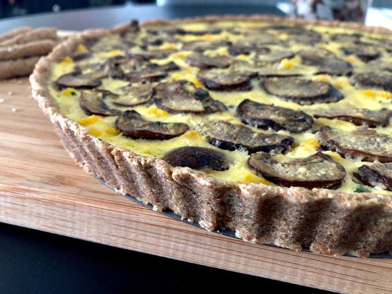 Quiche de champiñones, choclo y verdes