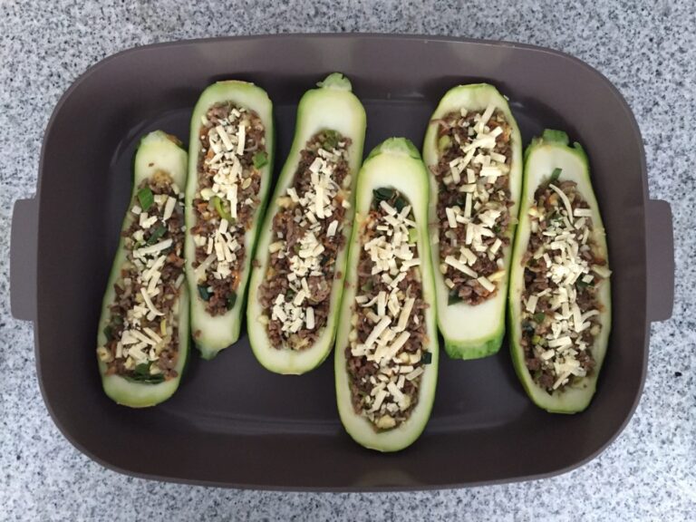 En una budinera apta para el horno deposita tus zapallitos, y rellénalos. Agrega 1 cucharadita de queso sobre cada uno, y cocina a horno medio (180ºC) por 10 minutos o hasta que el queso se haya derretido.